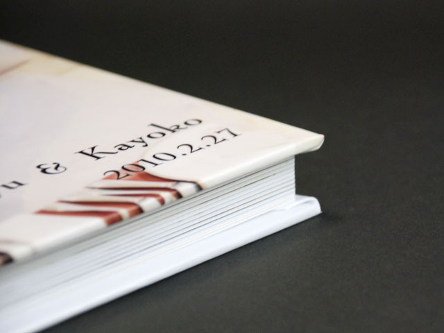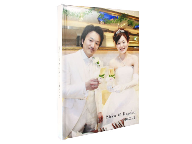 表紙には、当日お召しになった着物の柄をプリントいたします。付属する箱は桐箱です。